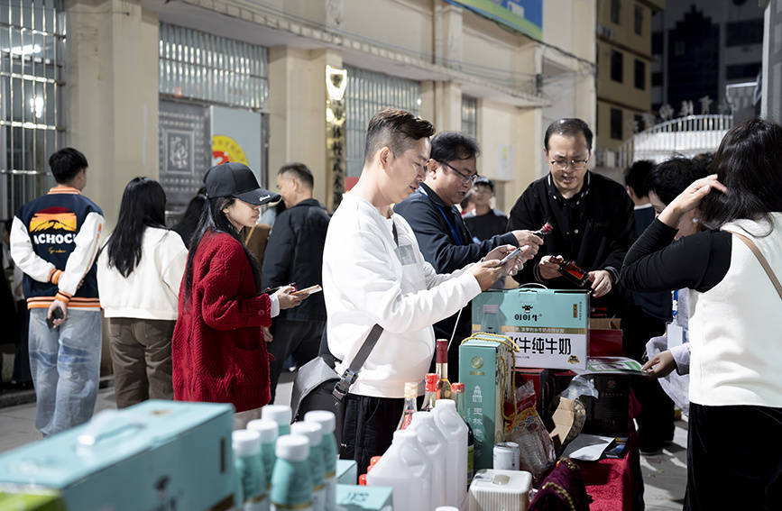 球迷在赛事现场特质摊位前采购当地农特居品。杨远航摄